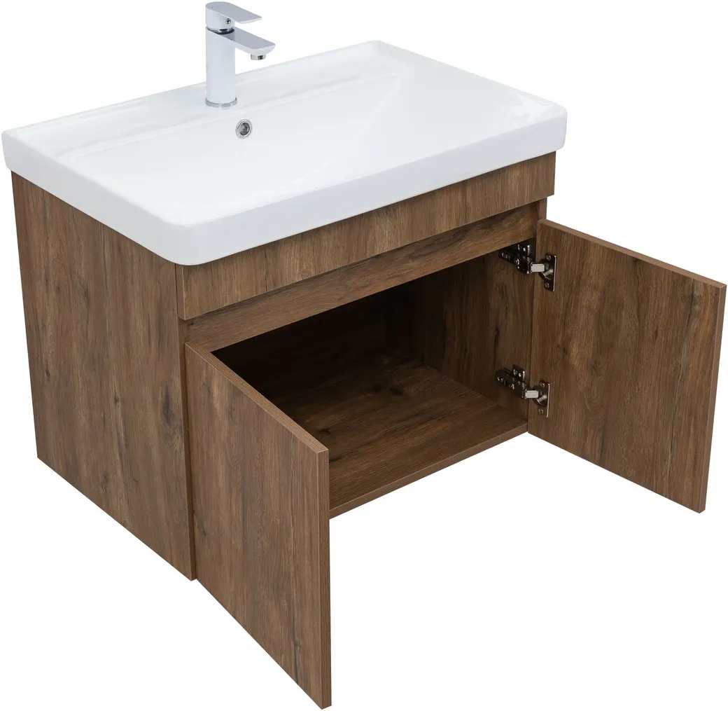 p Тумба под раковину Aquanet Оптима 70 дуб рустикальный – это элегантное решение для современной ванной комнаты. Универсальный дизайн гармонично впишется в любой интерьер, добавляя ему нотку свежести и уюта. /p p Корпус тумбы выполнен из влагостойкой ЛДСП с ламинированным покрытием, что гарантирует долговечность и устойчивость к воздействию влаги. Фасады также изготовлены из влагостойкой ЛДСП, обеспечивая единый стиль и надежную защиту от деформации. /p p Особое внимание уделено функциональности и комфорту использования. Петли с доводчиками обеспечивают плавное и бесшумное закрывание фасадов, предотвращая хлопки и продлевая срок службы мебели. Надежные навесы способны выдерживать нагрузку до 130 кг, гарантируя безопасность и устойчивость конструкции. /p p Тумба Aquanet Оптима 60 продумана до мелочей. В ней предусмотрено удобное место для подводки коммуникаций снизу, что облегчает установку и подключение сантехнического оборудования. /p