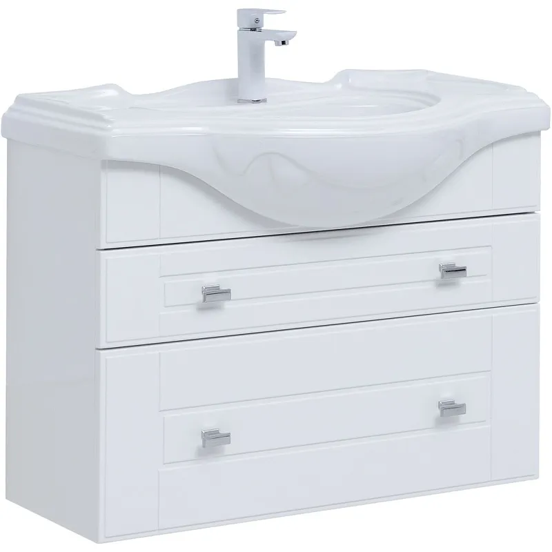 Тумба под раковину Aquanet Рондо 85 304289 выполнена в современном классическом стиле и станет идеальным решением для вашей ванной комнаты. Подвесная конструкция обеспечивает легкость монтажа и экономию пространства. Высококачественный материал и белый глянец добавляют изысканность и долговечность, а система хранения с ящиками позволяет удобно организовать пространство.