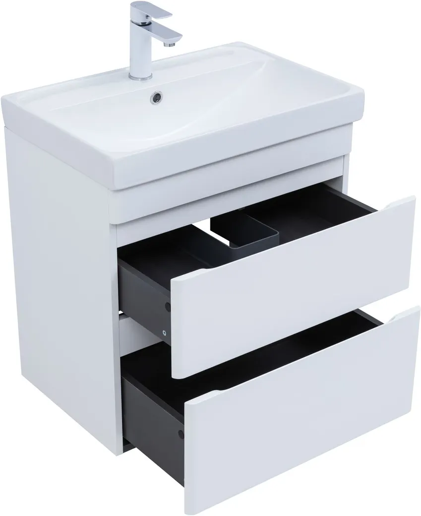 Тумба под раковину Aquanet Слим 60 белый сатин – компактное и функциональное решение для ванной комнаты. Она сочетает лаконичный дизайн и продуманные детали. Глубина тумбы с раковиной составляет 405 мм, что делает её удобной даже для небольших помещений.