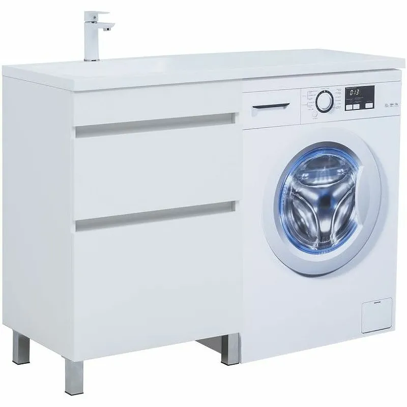 Тумба под раковину Aquanet Вега 120 329124 — идеальное решение для современных ванных комнат. Изготовленная из влагостойкого ЛДСП, она предлагает стильный и функциональный дизайн с белым глянцевым покрытием. Данная тумба включает место для стиральной машины, обеспечивая практичное использование пространства и современный стиль.