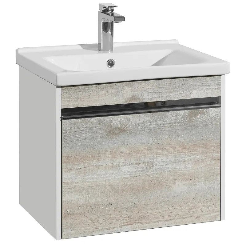 - Тумба с раковиной 60 см: Компактные размеры (58,2x49,3x42,9 см) позволяют установить ее даже в небольших ванных комнатах.