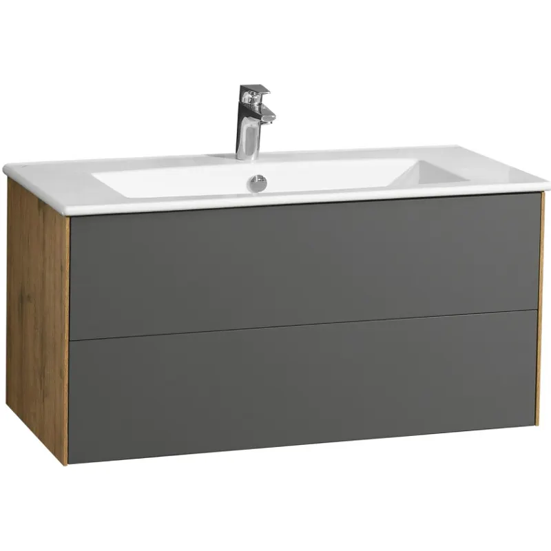 Тумба под раковину Aquaton Сохо 100 1A258201AJA00 подвесная Дуб веллингтон Графит софт