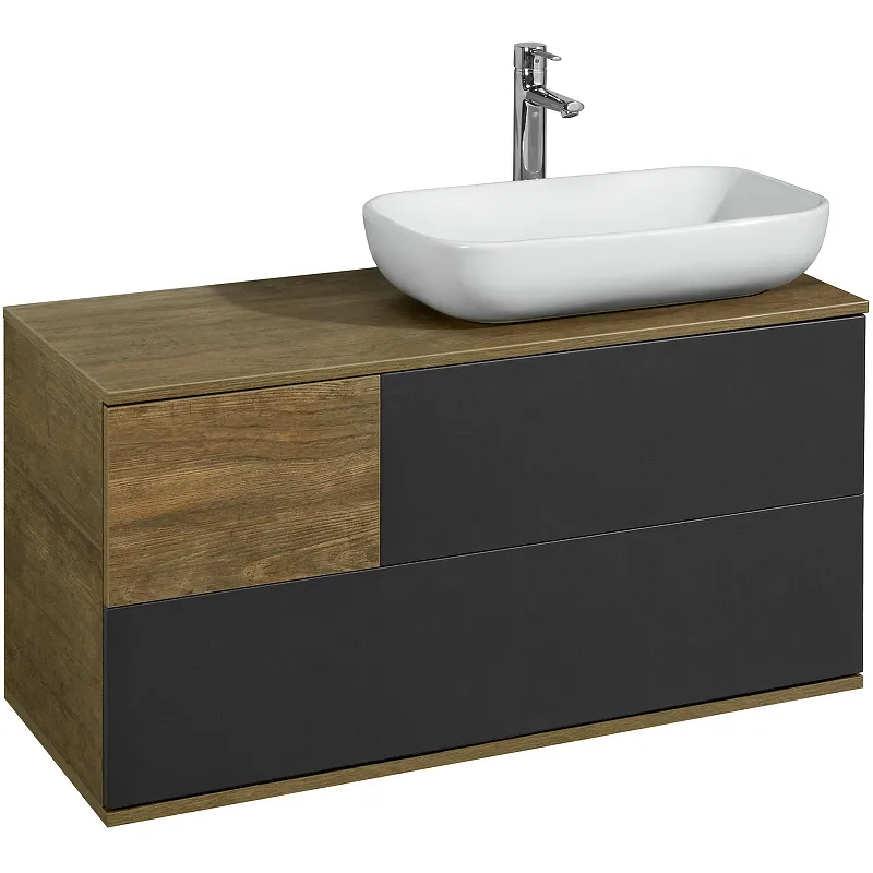 - Эстетика и функциональность: Цвет дуб кантри и антрацит придают мебели элегантный вид с древесным узором и черными акцентами.