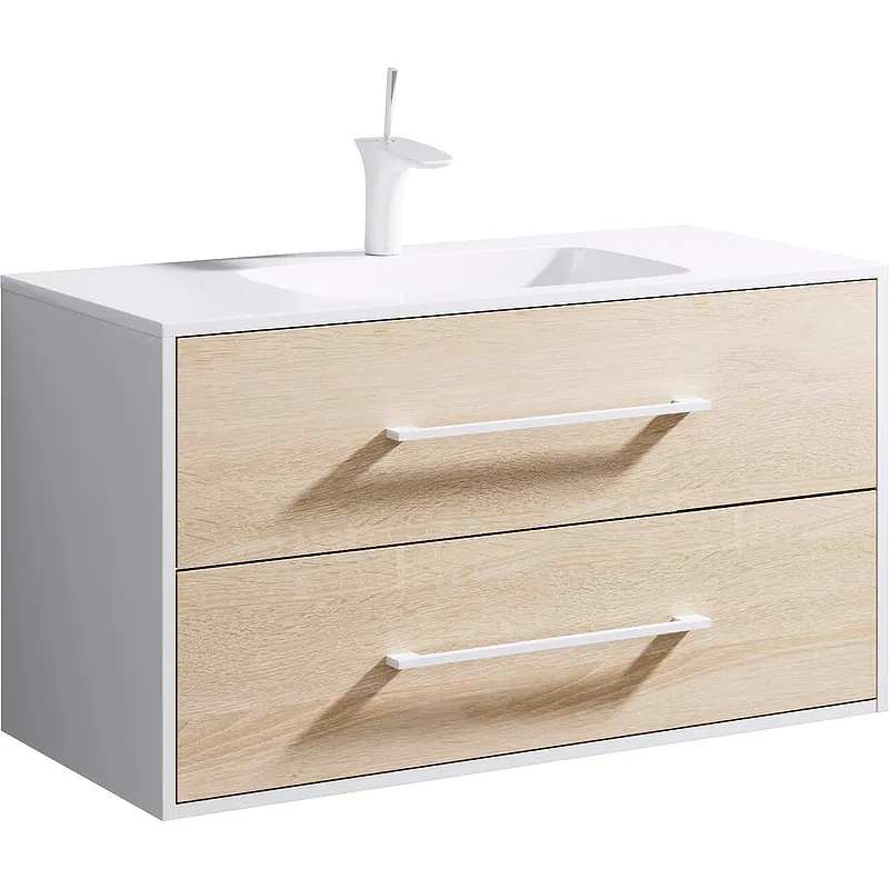 Тумба под раковину Aqwella 5 Stars Маями 100 MAI0110 подвесная Белая Дуб сонома