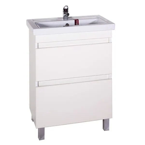 - Оптимальная функциональность: Тумба под раковину шириной 56.8 см оснащена двумя выдвижными ящиками с механизмом доводчика, обеспечивающим плавное закрывание.
