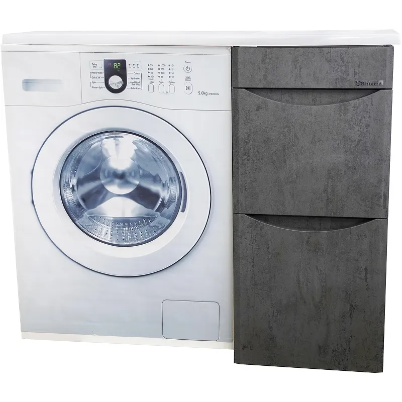 - Место для стиральной машины: Тумба спроектирована с учетом возможности размещения стиральной машины, что помогает экономить пространство.