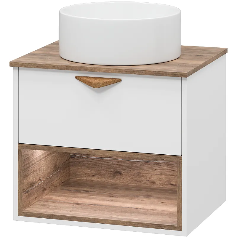 Тумба под раковину Brevita Bergen 60 BER-07060-19-01-1Я подвесная Белая матовая Дуб Галифакс олово