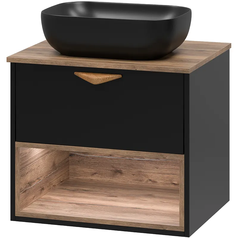 Тумба под раковину Brevita Bergen 60 BER-07060-19-02-1Я — это идеальное решение для создания современного интерьера в вашей ванной комнате. Данная подвесная тумба сочетает в себе стильный черный матовый цвет и древесный узор, что делает её незаменимой для тех, кто ценит премиум качество и стиль.