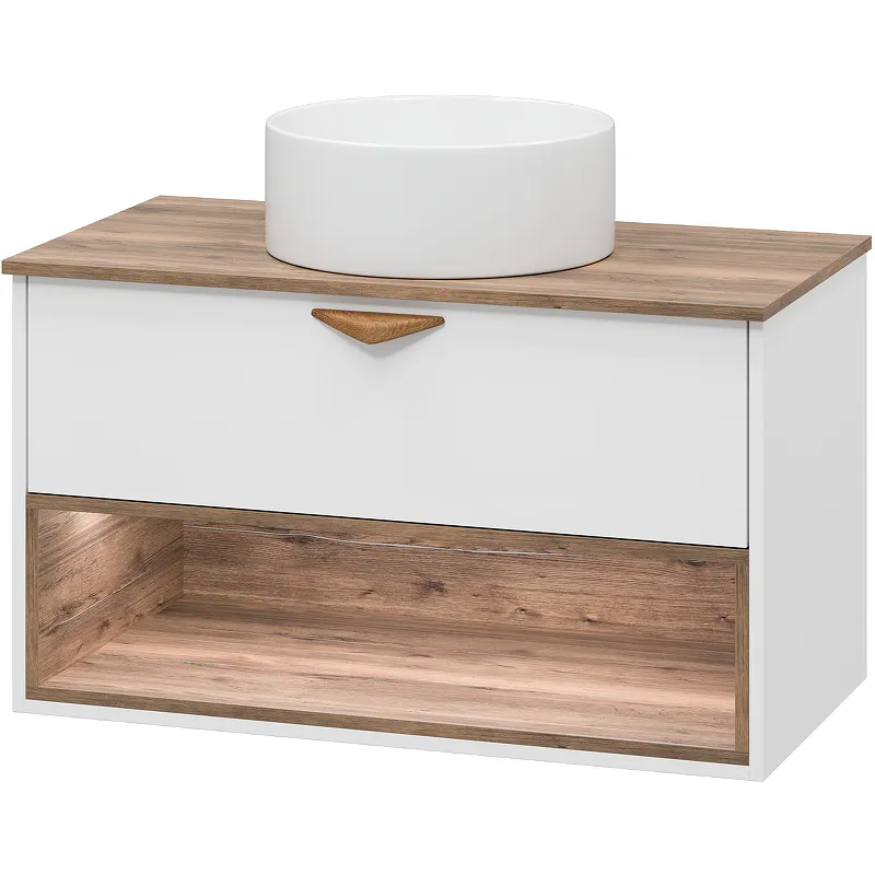 Тумба под раковину Brevita Bergen 90 BER-07090-19-01-1Я подвесная Белая матовая Дуб Галифакс олово