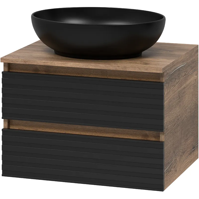 Тумба под раковину Brevita Dakota 60 DAK-09060-19/02-2Я подвесная Черный кварц Дуб Галифакс олово