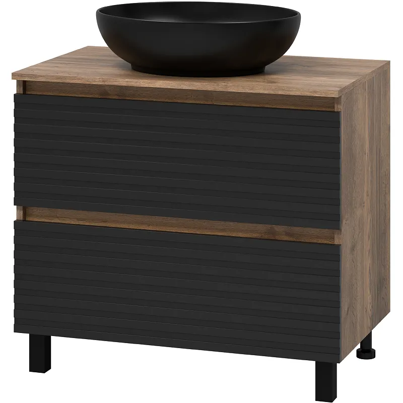 - Элегантный дизайн черный кварц и дуб Галифакс олово: уникальное сочетание цветов делает тумбу стильной и современной.