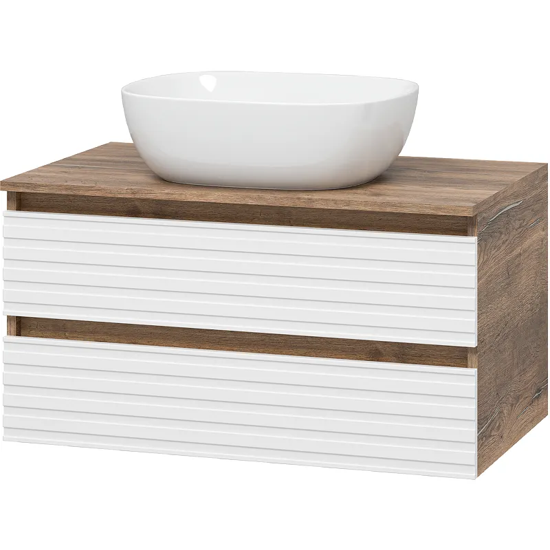 Тумба под раковину Brevita Dakota 80 DAK-09080-19/01-2Я подвесная Белая матовая Дуб Галифакс олово