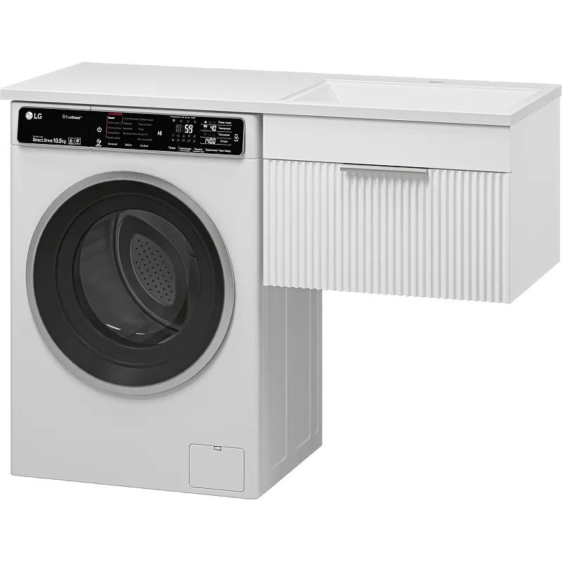 - Подвесная тумба под раковину экономит пространство, обеспечивая удобное размещение стиральной машины.