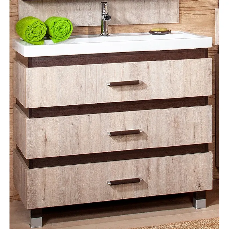 Тумба под раковину Бриклаер Техас 100 — идеальное решение для вашей ванной комнаты. Изготовленная из качественного ламинированного ЛДСП, данная мебель обеспечит долгий срок службы. Стильный дизайн в цвете дуб кантри и венге гармонично впишется в современный интерьер, а матовая поверхность добавит элегантности.