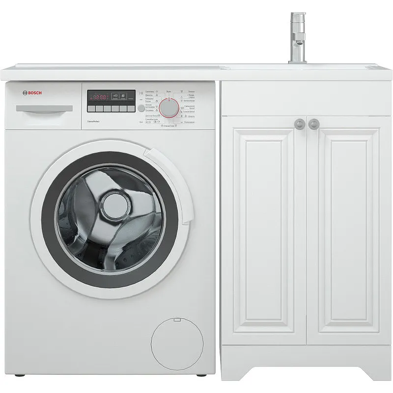 - Экономия пространства: Тумба с местом для стиральной машины, что особенно важно для компактных квартир.