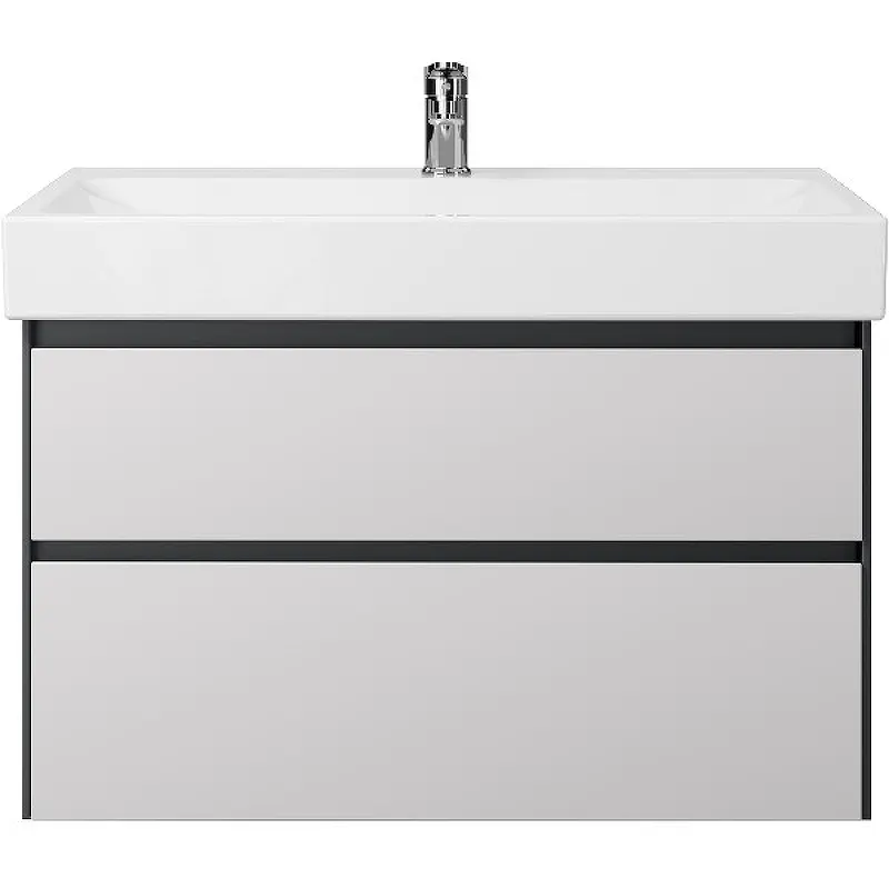 Тумба под раковину Creto Amelia 80 14-1078G — идеальное решение для вашего современного интерьера. Эта подвесная тумба, выполненная в стильном сочетании антрацита и белого матового цвета, станет ярким акцентом вашей ванной комнаты. Изготовленная из высококачественного МДФ, тумба гарантирует долговечность и устойчивость к влаге. Система хранения с двумя выдвижными ящиками и оснащением доводчиками обеспечивает удобство и комфорт в использовании.