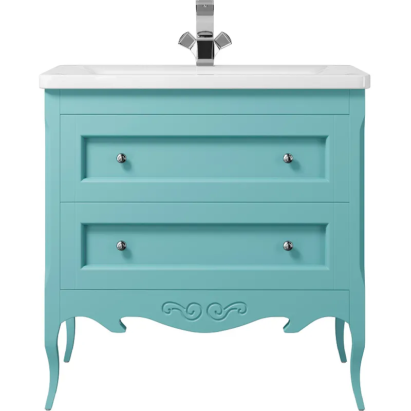 Тумба под раковину Creto Viva 85 13-1008B Blue — это идеальное решение для тех, кто ищет стильную и функциональную мебель для ванной комнаты. Напольная тумба выполнена в классическом стиле, что делает её универсальным элементом интерьера. Изготовленная из массива дуба и МДФ, она гарантирует долговечность и устойчивость к влаге.