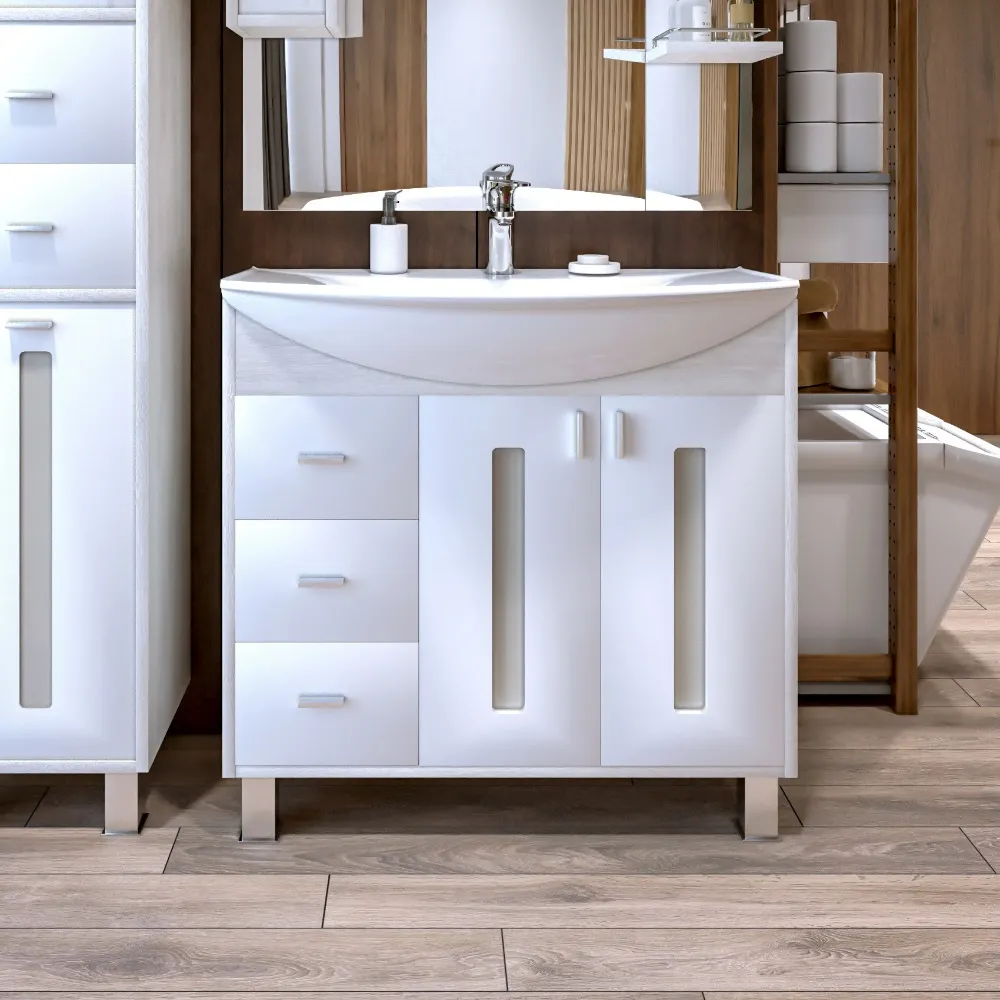 Тумба под раковину напольная Бриклаер БАЛИ светлая лиственница/белый, 85 см арт-4627125411311