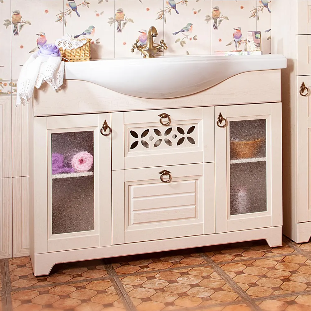 Тумба под раковину напольная Бриклаер КАНТРИ бежевый дуб прованс, 120 см арт-4627125413674