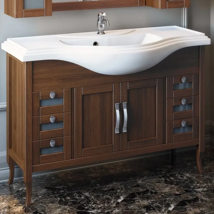 - Классический стиль тумбы с раковиной: Объединение классического дизайна и современных материалов делает её универсальной для любого интерьера.
