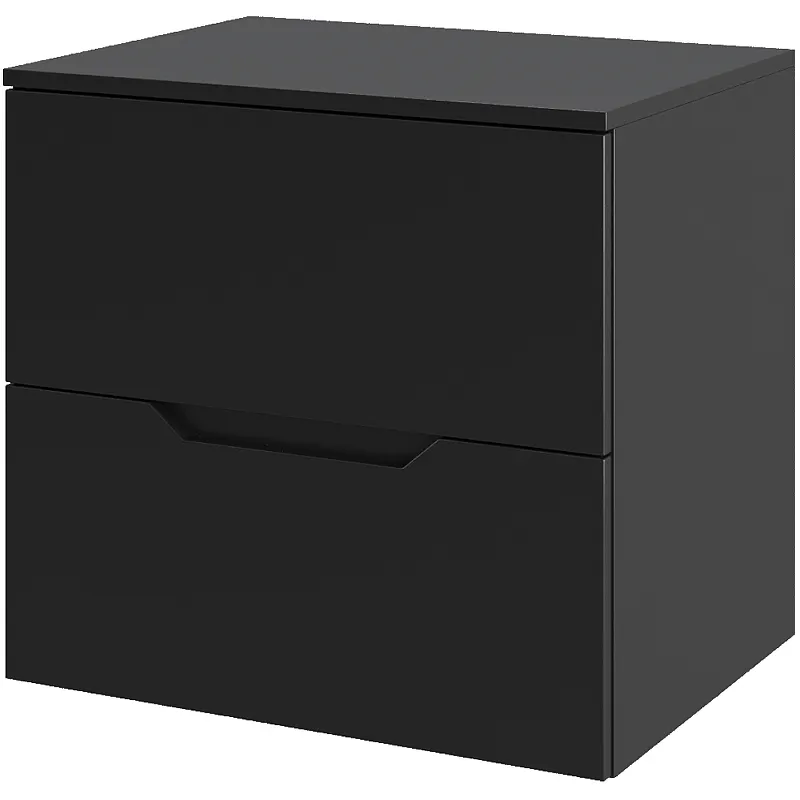 - Подвесная тумба с системой хранения: два выдвижных ящика с доводчиками обеспечивают удобство и бесшумность в использовании.