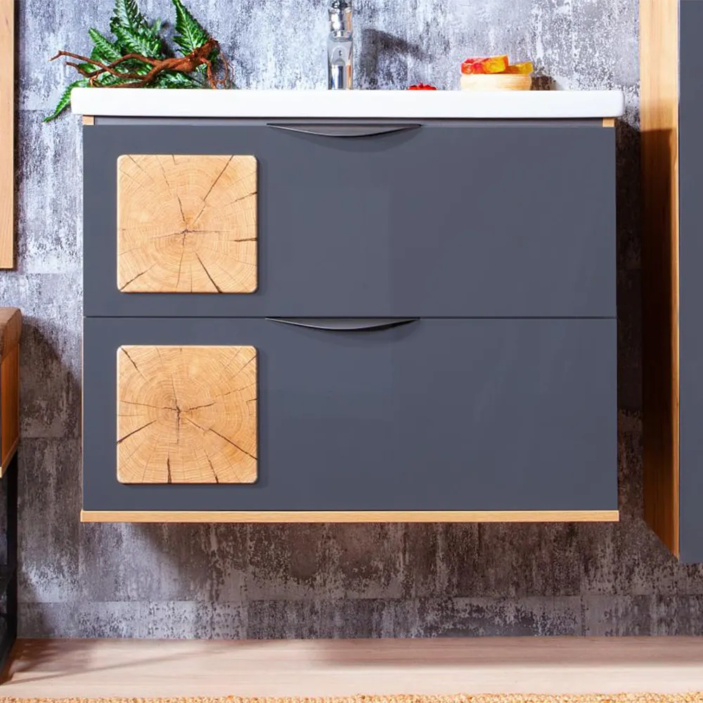 Тумба под раковину подвесная Бриклаер Форест дуб золотой/антрацит, 80 см арт-4627125414657
