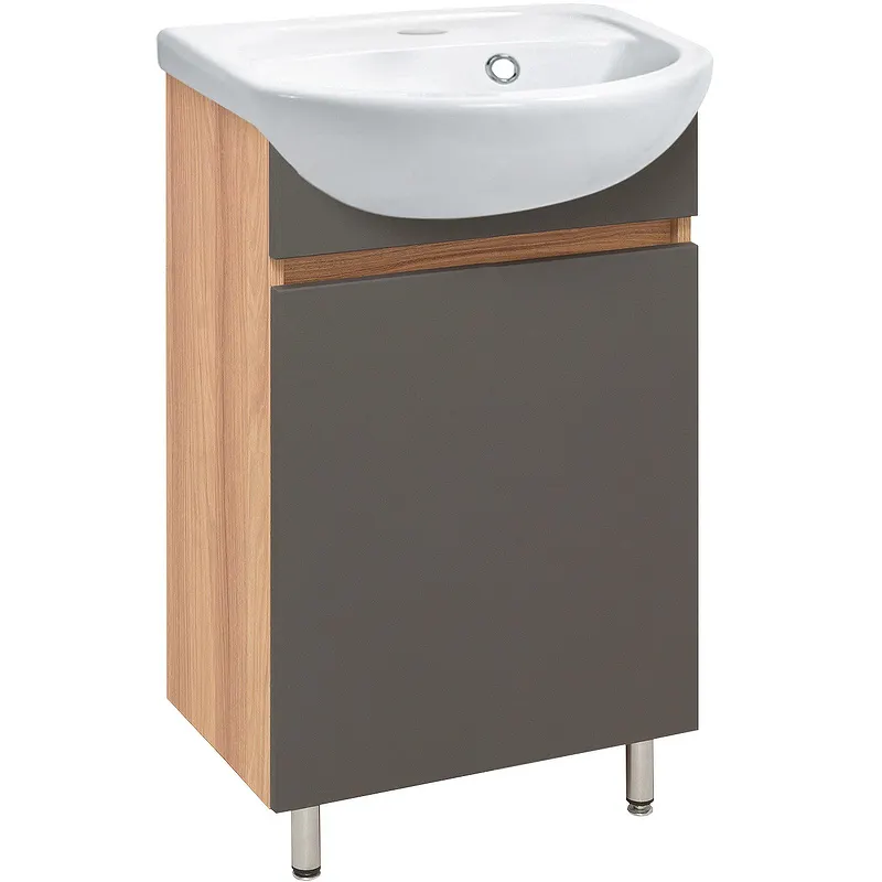 - Современный дизайн: Графитовый цвет и древесный узор подчеркивают стильность и элегантность данной тумбы.