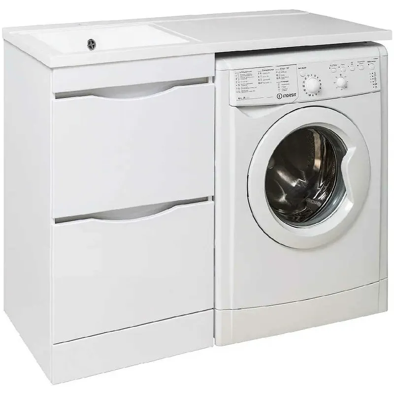 Тумба под раковину Runo Орион 105 00-00000145 Белая — идеальное решение для современной ванной комнаты. Изготовленная из высококачественного МДФ с покрытием из пленки ПВХ, она устойчива к влаге и коррозии, что гарантирует долгий срок службы. Напольная установка обеспечивает стабильность и удобство.