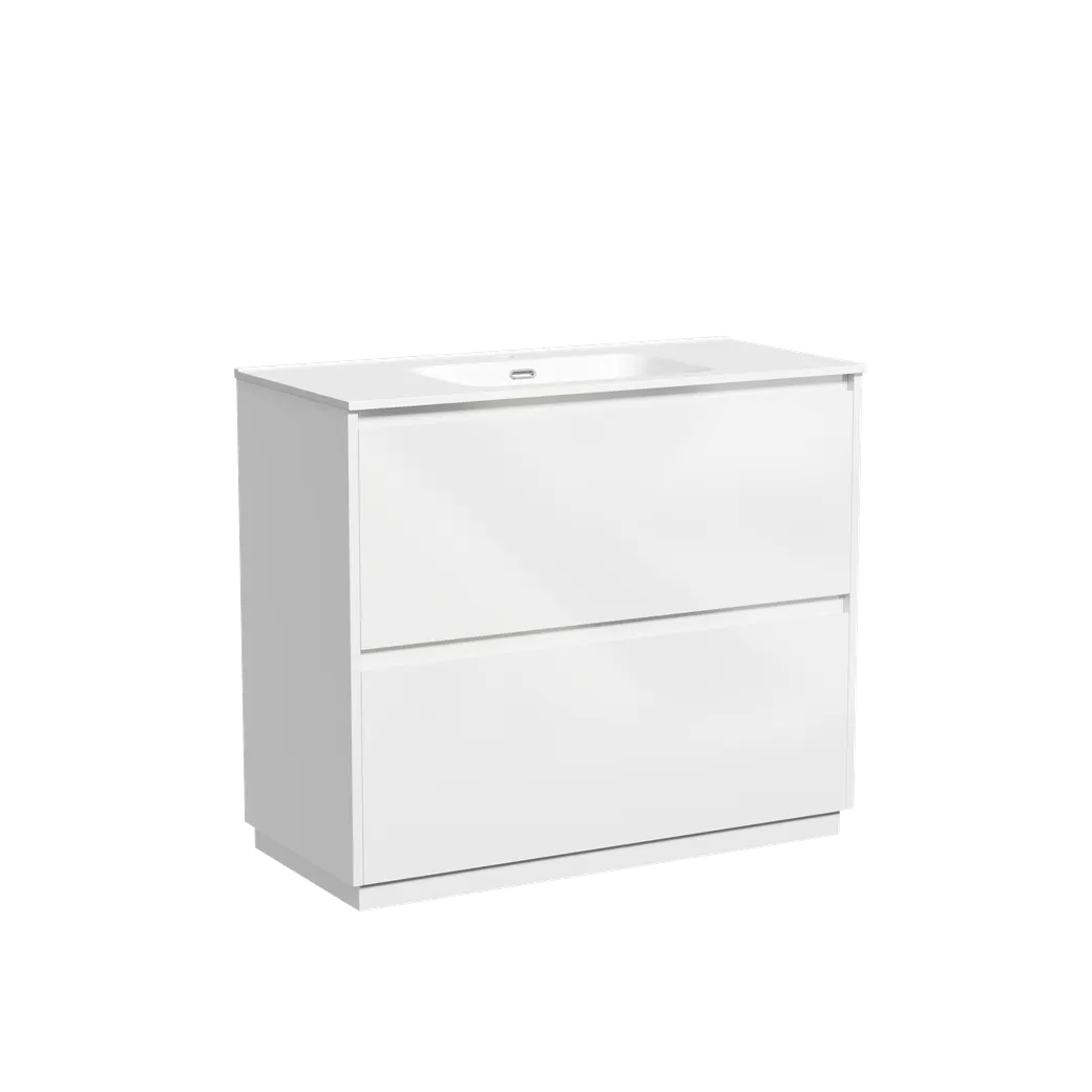 Тумба под раковину SANCOS Libra Floor напольная, 990х450х840 c двумя ящиками оснащенными доводчиками скрытого монтажа с системой Soft close (плавного закрывания), c фрезерованными ручками по всей длине фасада, белый глянец , арт. LB100FW