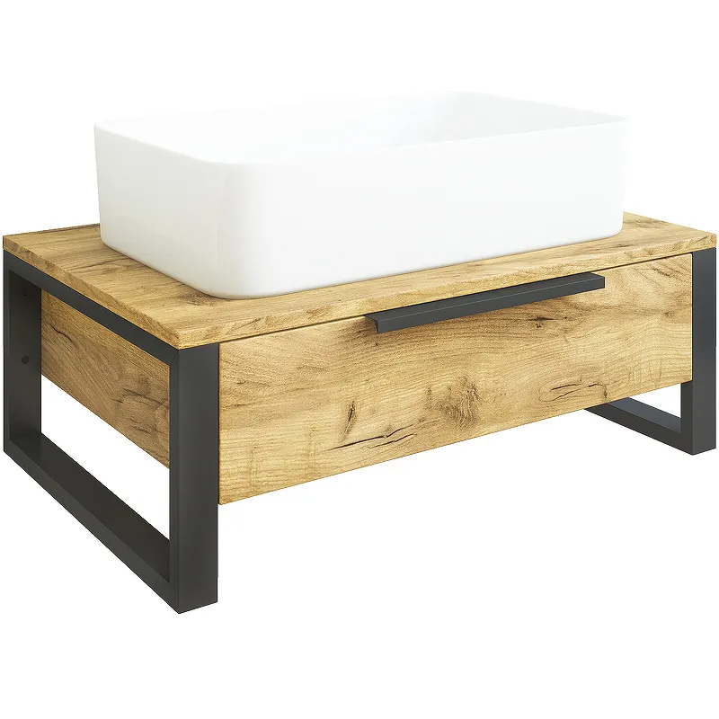 Тумба под раковину Sanflor Гард 70 С22581 подвесная Дуб крафт золотой Черная