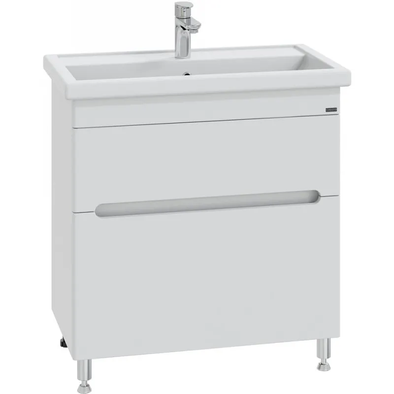 Тумба под раковину СанТа Лондон 80 224007л Белая — идеальное решение для просторной ванной комнаты. Эта напольная тумба с раковиной прямоугольной формы выполнена в современном стиле и станет стильным дополнением к вашему интерьеру. Изготовленная из влагостойкого ЛДСП и МДФ, она обеспечивает долговечность и устойчивость к влаге.