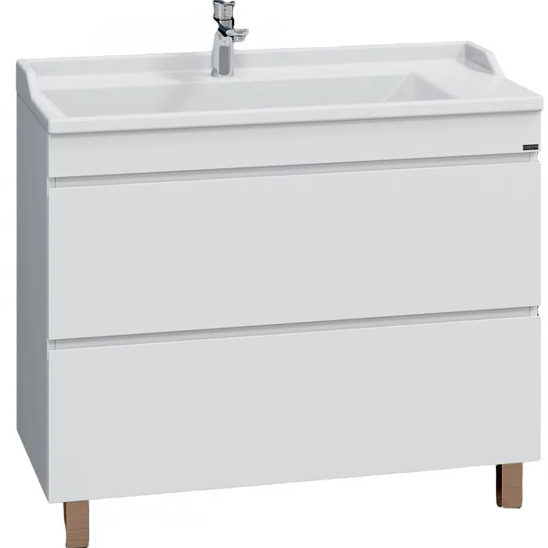 Тумба под раковину СанТа Марс 100 700298 Белый станет идеальным решением для просторной ванной комнаты. Данная тумба с раковиной прямоугольной формы выполнена в современном стиле, что придаст вашему интерьеру изысканность и функциональность. Этот элемент мебели отлично подходит для загородного дома или квартиры, обеспечивая удобное хранение благодаря двум ящикам с направляющими и доводчиком.