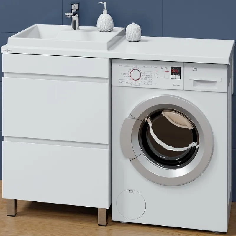 - Практичный дизайн: Прямоугольная форма раковины и тумбы позволяет оптимально использовать пространство в ванной комнате.