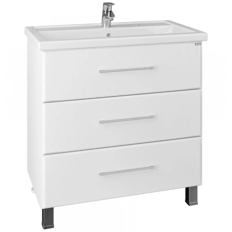 Тумба под раковину СанТа Омега 80 207006 Белая — идеальное решение для создания современного стиля в вашей ванной комнате. Данный элемент мебели отличается напольным монтажом и оснащён системой хранения с тремя выдвижными ящиками. Выполненная в белом цвете, тумба с глянцевой поверхностью гармонично впишется в любой интерьер.