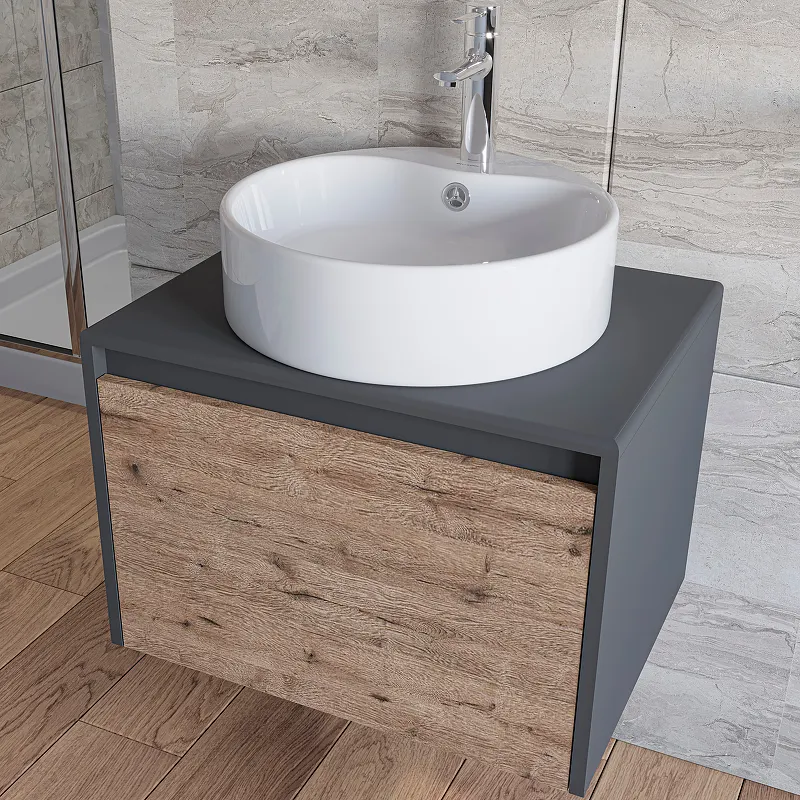 Тумба под раковину Stella Polar Эвита 60 SP-00001056 подвесная Дуб Веллингтон Темно-серая