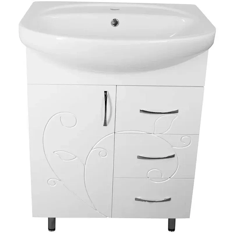 - Удобный монтаж: Напольная установка облегчает процесс монтажа тумбы в ванной комнате.