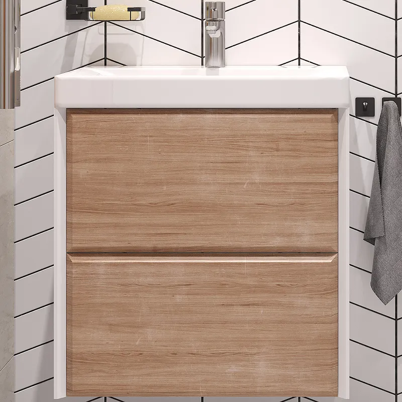 Тумба под раковину Velvex Gesso 60 tp.GES.9696.60.2Y подвесная Белая матовая Дуб сонома