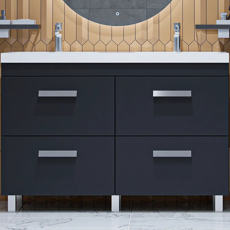 - Система хранения с ящиками: Тумба с четырьмя выдвижными ящиками Hettich обеспечивает удобство и порядок, что делает её идеальной для ванной комнаты.