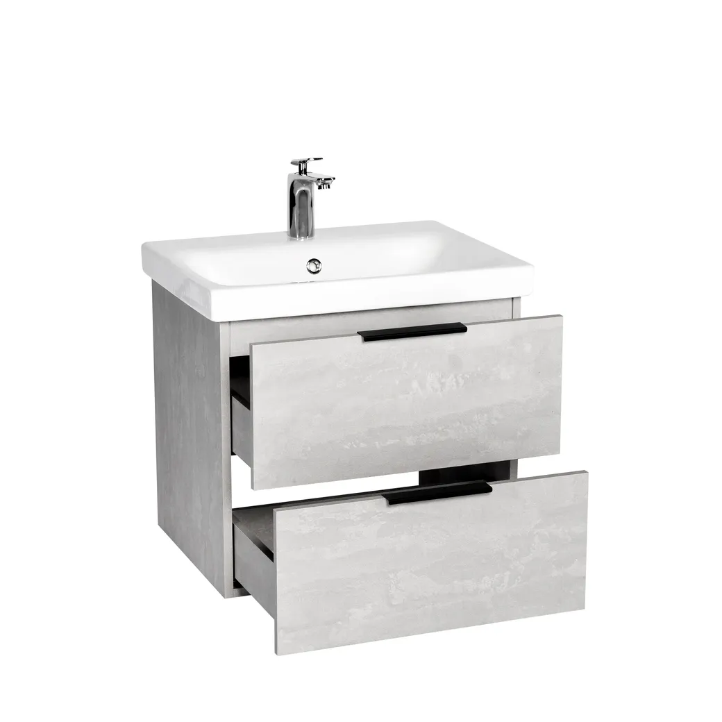 Тумба БЕРЛИН 60, подвесная, 2 ящ., цемент (под раковину СОМО 60, MODUO 60), VIANT. Комплектация: корпус, крепления к стене 2 шт.