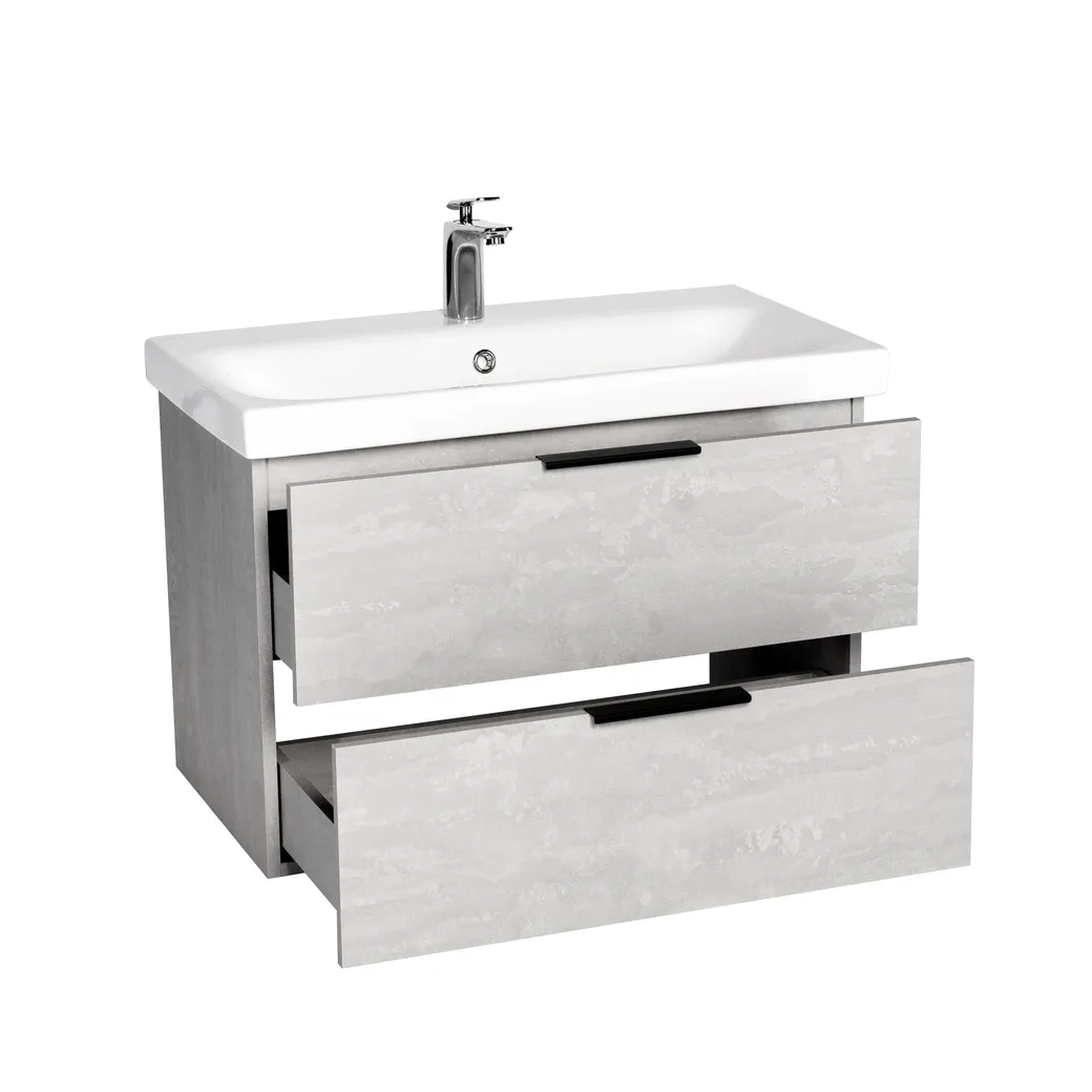 Тумба БЕРЛИН 80, подвесная, 2 ящ., цемент (под раковину СОМО 80, MODUO 80), VIANT. Комплектация: корпус, крепления к стене 2 шт.