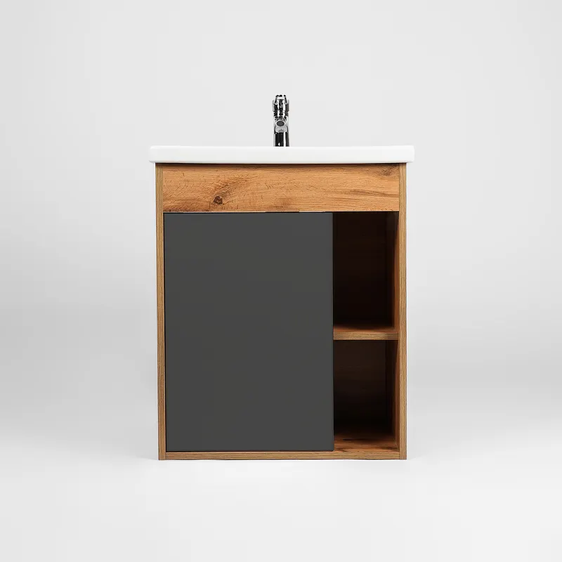 Тумба под раковину VIANT Бостон 70 VBOS70COG-T1STP подвесная Графит матовый Дуб Вотан