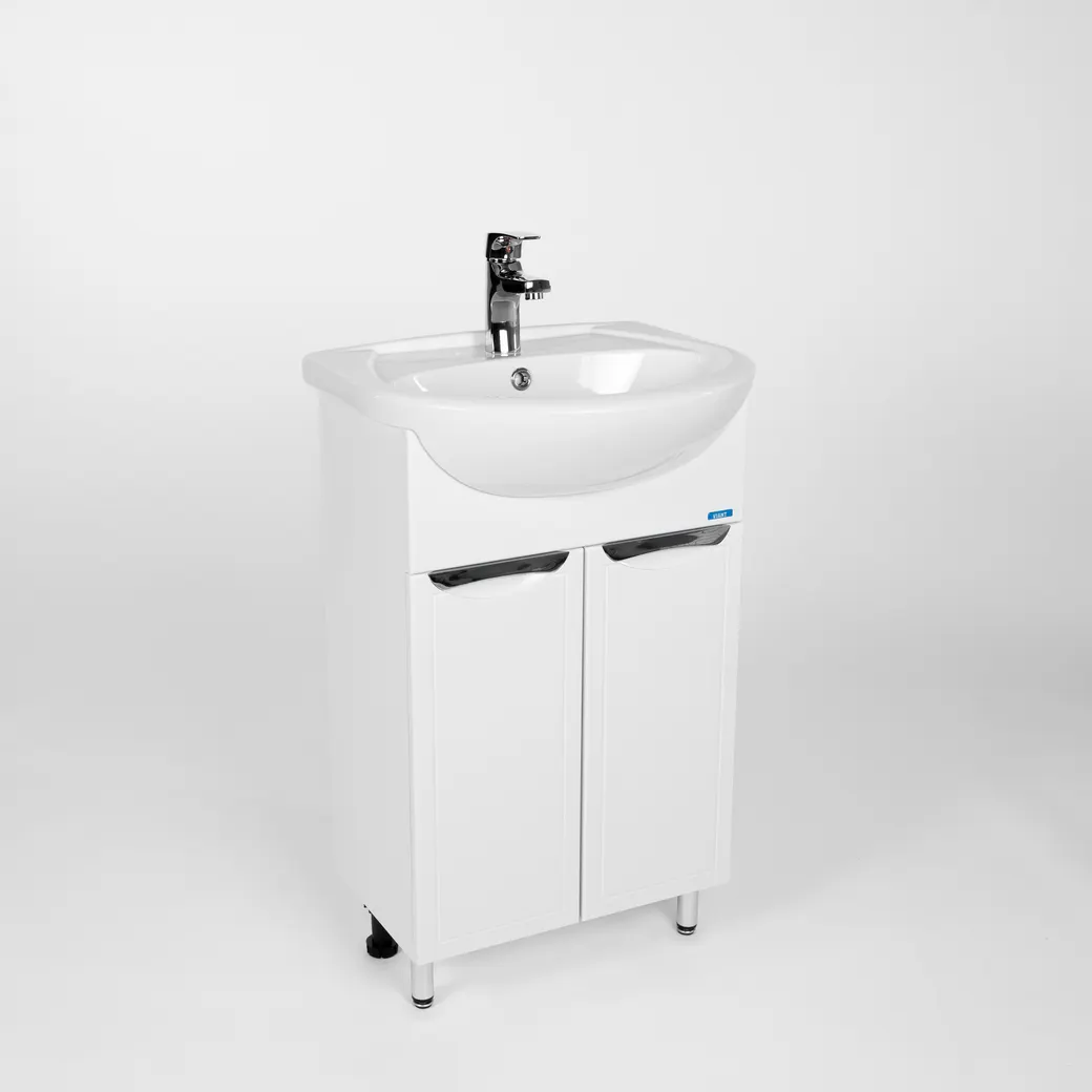 Тумба ЛИМА 55, напольная, 2 дверцы, белая (под раковину ERICA 55), VIANT. Комплектация: корпус, полки ЛДСП, 2 ножки глянцевый хром, 2 ножки черный пластик.
