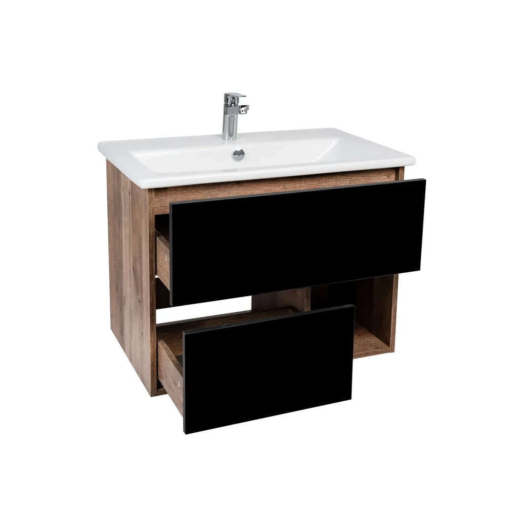 Тумба ЛЮКСЕМБУРГ 75, подвесная, 2 ящ., черная (под раковину ЭЛИНА 75), VIANT. Комплектация: корпус, крепление к стене 2 шт.
