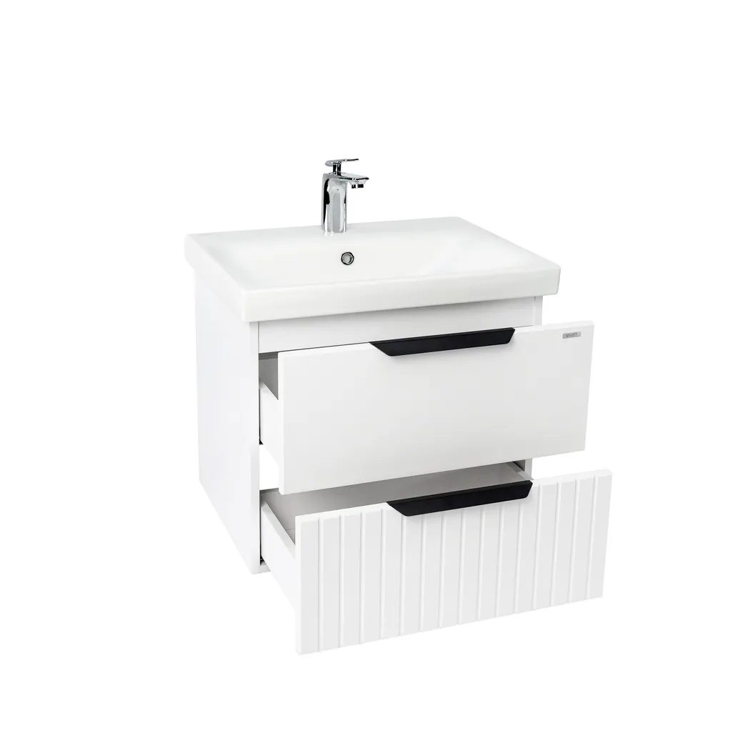 Тумба СИЦИЛИЯ 60, подвесная, 2 ящ., белая (под раковину COMO 60, MODUO 60), VIANT. Комплектация: корпус 1 шт., крепления к стене 2 шт.