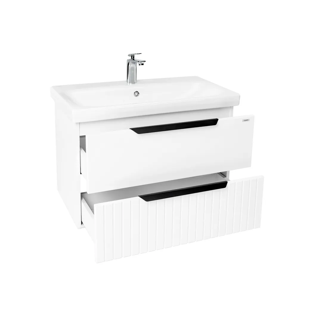 Тумба СИЦИЛИЯ 80, подвесная, 2 ящ., белая (под раковину COMO 80, MODUO 80), VIANT. Комплектация: корпус 1 шт., крепления к стене 2 шт.