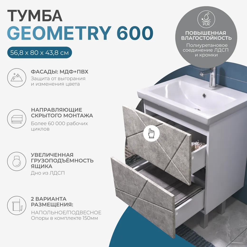 Тумба под раковину VIGO Geometry 60 напольная бетон арт-015 бетон