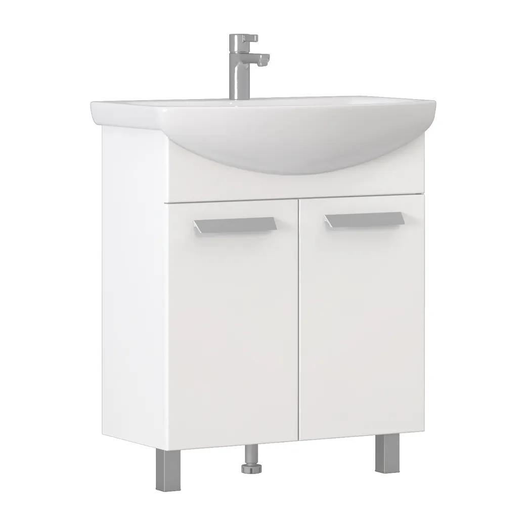 Тумба под раковину VIGO Hoska 660 мм белый (232). Комплектация: корпус тумбы, 2 дверцы, 1 полка ЛДСП, 2 квадратные регулируемые опоры (матовый хром), 1 кухонная опора, демпфер