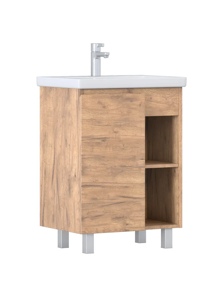 Тумба Milos 60, напольная, 1 дверца, дуб золотой (под ракоовину Como 60). Оснащение: 1 дверца, петли с механизмом доводчика, 2 полки ЛДСП, 4 опоры квадратные регулируемые. Колекция VIGO MILOS: петли с доводчиком, полки из влагостойкой ЛДСП, толщина 16 мм, интегрированные ручки, декор материала с имитацией под дерево.