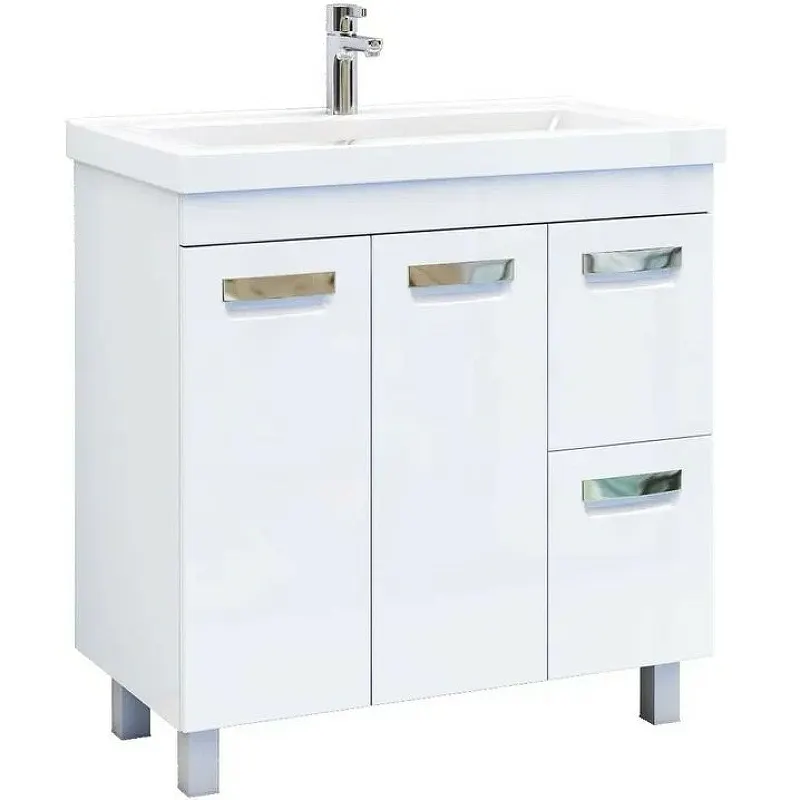 Тумба под раковину Vigo Plaza 80 — это идеальное решение для функционального и стильного оформления ванной комнаты. Данная напольная тумба оснащена системой хранения с ящиками и дверками, что позволяет эффективно организовать пространство. Материал корпуса — влагостойкая ЛДСП, а фасад выполнен из МДФ с глянцевым покрытием, что обеспечивает долговечность и привлекательный внешний вид.