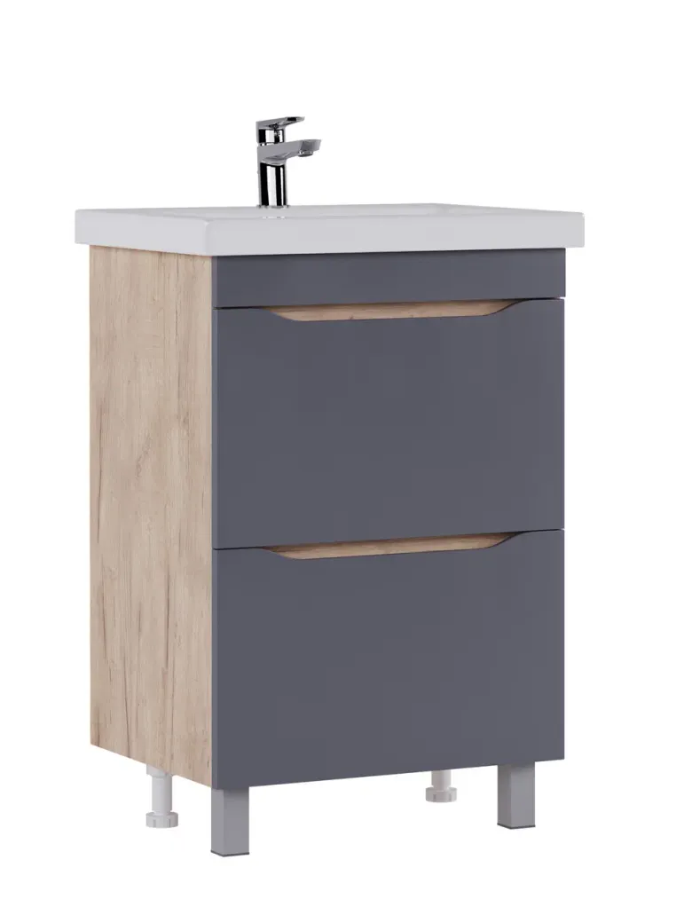 Тумба под раковину VIGO Wave 60 напольная 358 дуб золотой. Комплектация: корпус, 2 выдвижных ящика, выдвижной органайзер для мелочей, шариковые направляющие полного выдвижения, 2 опоры квадратные регулируемые, 2 кухонные опоры, сифон. Поставляется в разобранном виде. Сифон Vigo в комплекте..